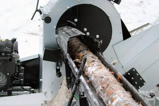 Vedmaskinen er montert med en 22 hk bensinmotor.