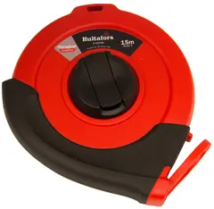 Lukket plastkapsel.Vikle sveiv.Festekrok.Måler diametre opp til 3,14 m og lengder opp til 15 m.Bredde: 12 mm.