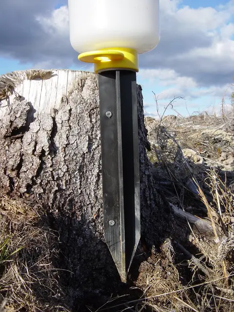 En letthåndterlig felle med jordspyd som enkelt slås ned i bakken.