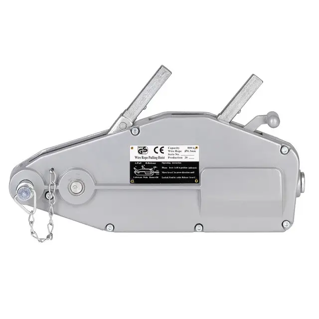 Leveres med håndtak, 20m vaier med krok og 2 brytpinner som finnes i bærehåndtaket på taljen.