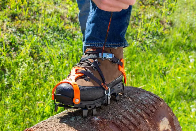 Skallbindingen gjør den enkel å ta av og på og de justerbare sidesurende øynene gjør det mulig å tilpasse stegjernene til nesten alle arbeids- og tursko.