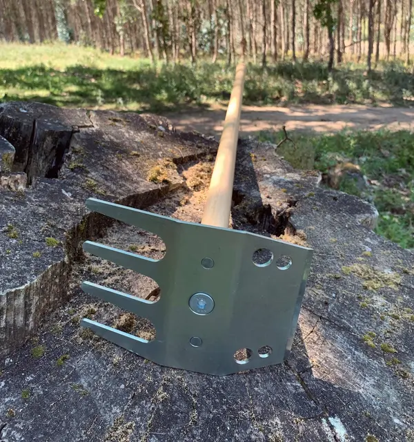 Det kompakte verktøyet kombinerer en hakke og en rake og kan derfor anvendes effektivt i forskjellige jordsmonn.