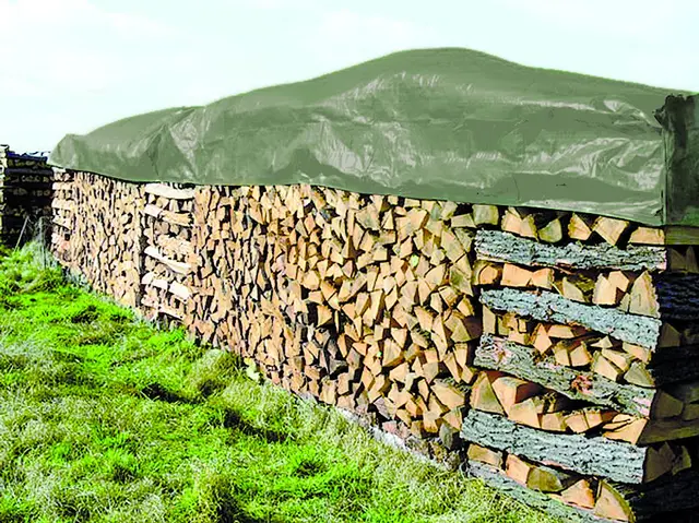 Laget av slitesterkt og forsterket polyetylenstoff. Forsterket kant rundt med sløyfer i rustfritt stål med 1m mellomrom. Laminert på begge sider, 120 g/m2. UV-stabilisert og vanntett. Allsidig bruk, ikke bare for å dekke ved - men også for praktisk bruk i hagen, byggeplassen, skogen, camping etc.