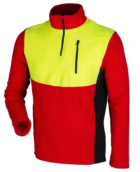 En lett fleecetrøye som passer litt kjølige dager. Flexibelt materialet som gir bra bevegelsesfrihet. Isolerer mot kulde, høy hals, brystlomme med glidelås. Veldig lett. 100% polyester. Farge: Rød/Gul Størrelse: XS-XL