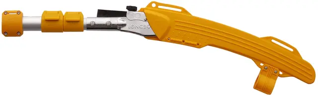 Teleskopstang av kraftig ovalt aluminiumsprofil.